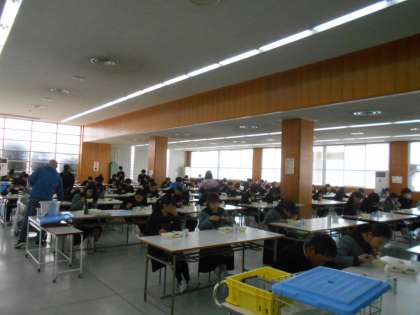 (写真は、昼食ホールでの1年生の給食の様子です。)