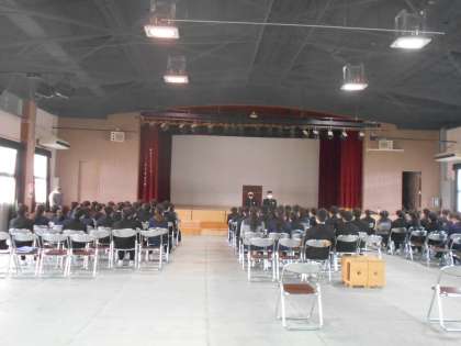 1年生の学年集会を講堂で行いました。先日行われた生徒専門委員会の報告が各委員会の代表者からありました。