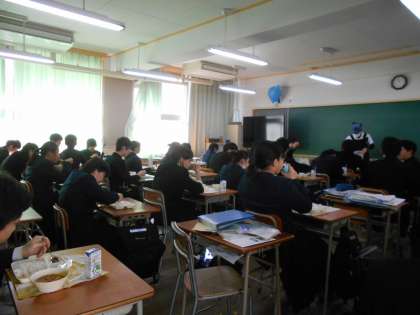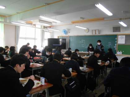 3年生にとっては、本日の給食が中学校生活3年間最後の給食となりました。写真は各学級の給食の様子です。