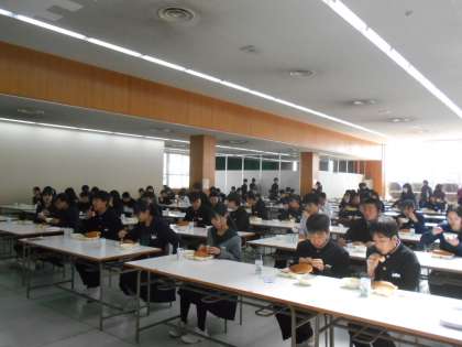 (写真は、昼食ホールでの2年生の給食の様子です。)