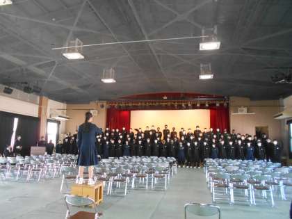 明日の3月12日(金)に実施する卒業式に向けた練習を式典会場となる講堂で行いました。