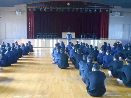 2年生の学年集会を講堂で行いました。落合先生から、コロナ禍の影響により生活様式も大きく変化した1年ではあったが、新しい取り組んでいくことが大切なことであるというお話がありました。