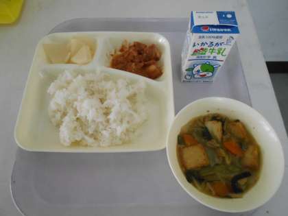 本日の献立は、ごはん、鶏肉のチリソース焼き、大根の中華あえ、中華煮、牛乳です。本日、今年度の最後の給食の日となりました。最終日の献立は、中華メニューでした。日頃から、学校給食では栄養バランスのとれた献立に取り組んでいます。子どもたちの健康促進をねらいとする食育の一環として、学校給食は位置付けられています。