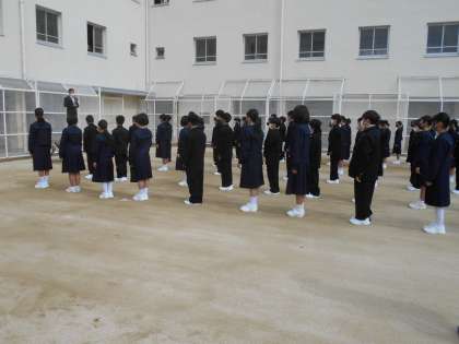 新入生は登校後に、上グランドで集合・整列です。