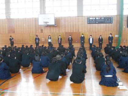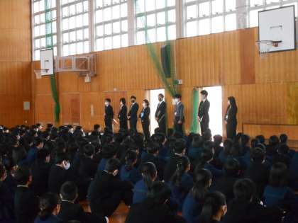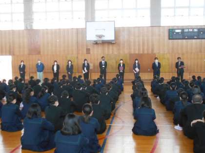 就任式では、この度、4月1日より住吉中学校にお越しいただいた9名の教職員の皆さんを紹介がありました。