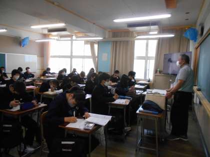 2年生の授業の様子です。2年生では、昨年度に学習した内容を振り返りながら、今年度の学習内容についての説明等が行われました。