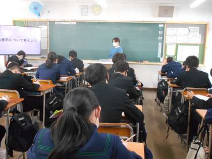 本日の6限目に、3年3組で栄養教諭の奥田先生の食育の授業を行いました。