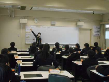 〈写真中〉2年2組(英語)