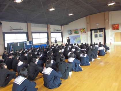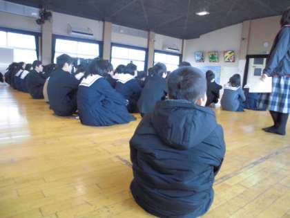 3年生を講堂に集めて