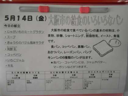 大阪市の学校給食では、本日登場した「コッペパン」以外に、食パン、おさつパン、レーズンパン、黒糖パン、パンプキンパンの合計6種類のパンが提供されています。