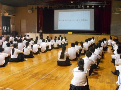 3年生の学年集会を講堂で行いました。吉江先生から、誰もが無限の可能性を秘めており、夢の実現に向けて自分の「信頼口座」を確認することで、自分自身と向き合う時間をもってほしいというお話がありました。