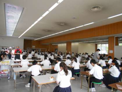 (写真は、昼食ホールでの2年生の給食の様子です。)