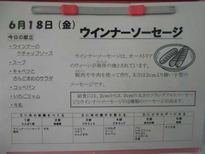 本日の献立で登場した「ウインナーソーセージ」は、オーストリアのウィーンが発祥の地とされており、豚肉や牛肉を使ってつくられています。