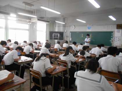 1年生の各学級での期末テスト第2日目の様子です。