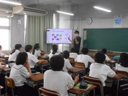 授業内容は、曜日や天気の尋ね方と答え方の学習活動が行われました。