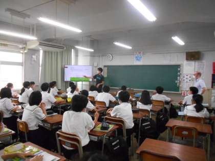 1限目は、1年1組で英語科の岡田先生の研究授業が行われました。