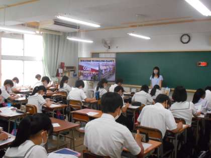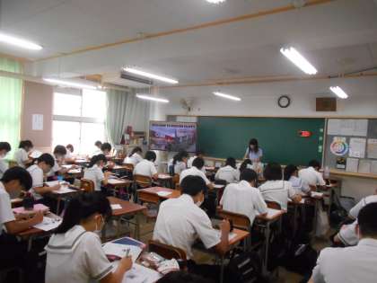 同じく、1限目に、3年1組では英語の大倉先生による研究授業が行われました。