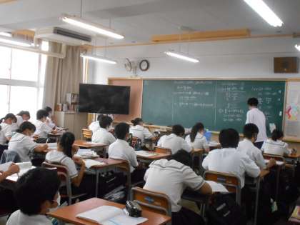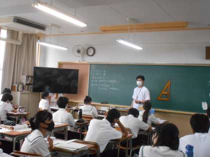 5限目には、2年3組で数学の左海先生による研究授業が行われました。