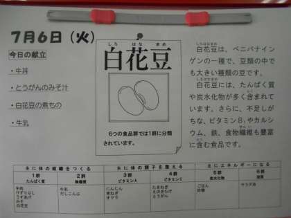 本日の献立に登場した「白花豆(しろはなまめ)」は、ベニバナインゲンの一種で、タンパク質や炭水化物が豊富に含まれています。