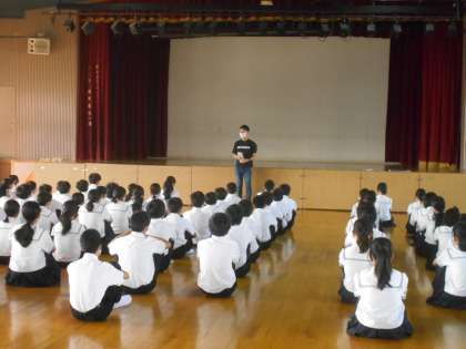 1年生の学年集会を講堂で行いました。岡田先生から、文化祭の取り組みについてのお話がありました。