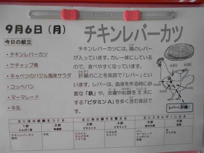 本日の献立「チキンレバーカツ」は、鶏のレバーをカレー味にして食べやすくなっていて、鉄分やビタミンAが豊富に含まれています。