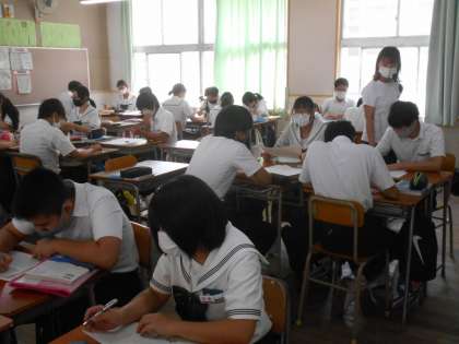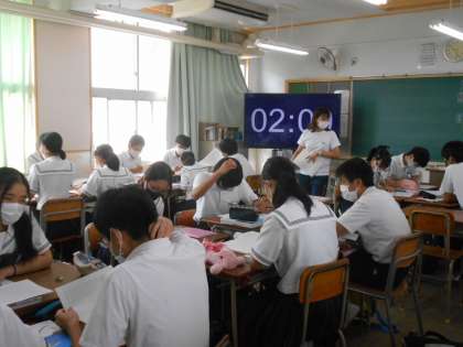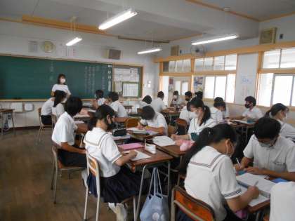 本日、1限目に3年3組で、国語科辰巳先生の研究授業が行われました。