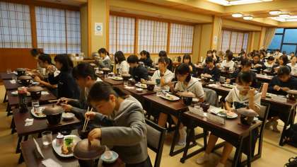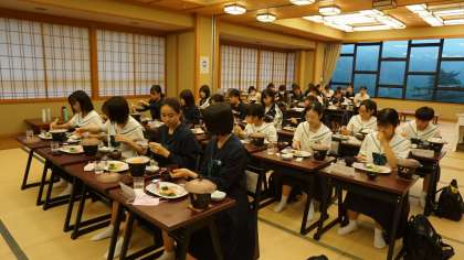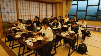 女子生徒も、昨晩の夕食会場と同じ宴会場(りんどう)で、朝食をとりました。