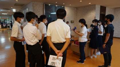 朝食を食べ終えて、班長は本日の活動で必要な貸し出し用の携帯電話を受け取ります。