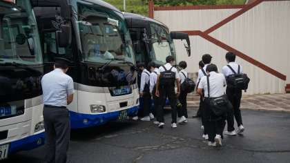 出発準備を終え、バスに乗車して、平和記念公園へと向かいました。
