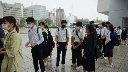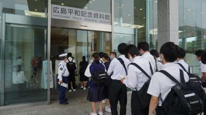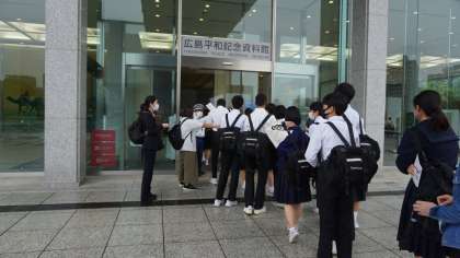 1組から順番に入館して、平和資料館の見学がスタートです。