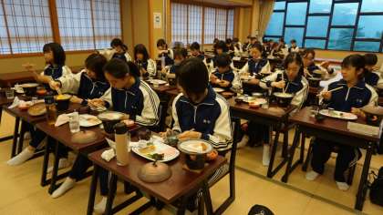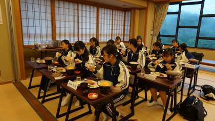女子生徒も、2階の宴会場(りんどう)で朝食を食べ終えました。