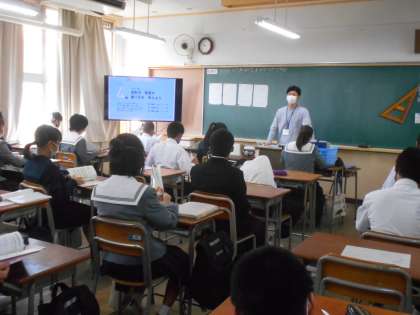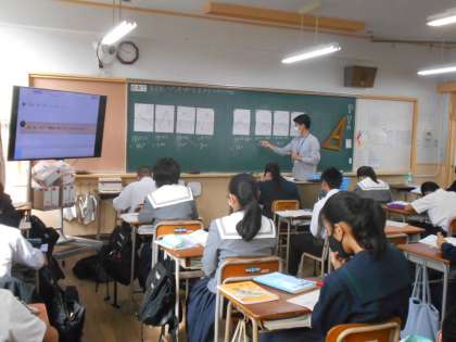 本日、2限目に2年3組で、数学科左海先生の研究授業が行われました。