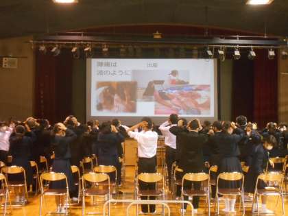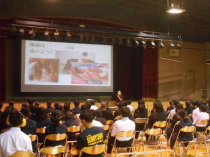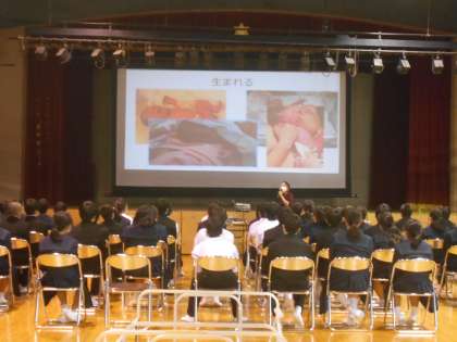 本日、5・6時限目に、1年生で「子ども将来のライフプラン支援事業」として、助産師を講師としてお迎えし、「性・生教育」を講堂で実施しました。
