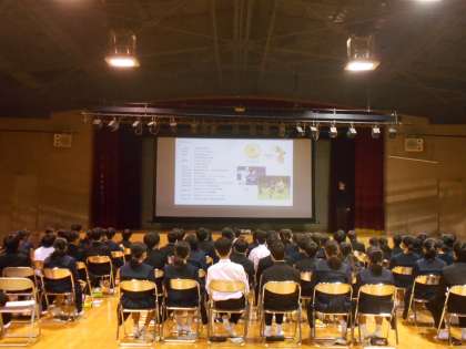 本日、1年生では、5限目と6限目に講堂で、職業講話の取り組みを実施しました。