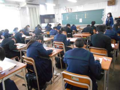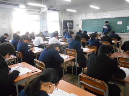 1年生の各学級での期末テスト第1日目の様子です。