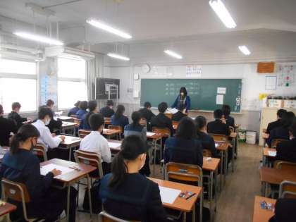 1年生の各学級での期末テスト第2日目の様子です。