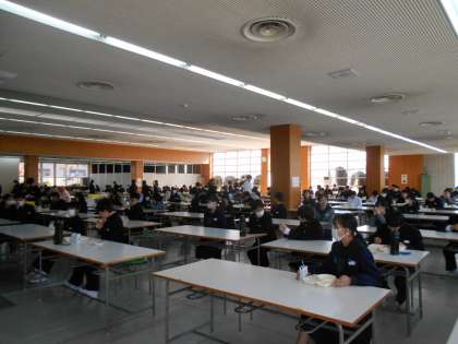 (写真は、昼食ホールでの1年生の給食の様子です。)