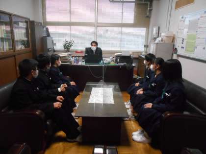 <会長>大川絢女:今期から2年生が中心となる生徒会となったので、生徒の皆さんから頼りにされる会長となりたいと思っています。生徒会を遠い存在として見ている人も多いので、もっと生徒に近い生徒会をつくりあげていきたいです。生徒意見箱の工夫をしたり、生徒の皆さんからの意見を聞きやすくしたいと思っています。よろしくお願いします。