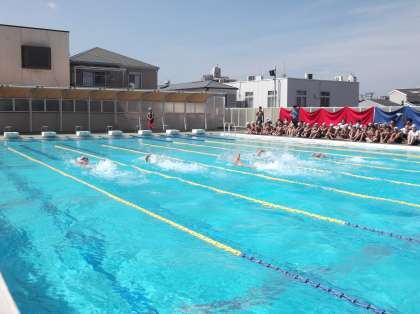 天気に負けず、三年生の水泳大会も大盛り上がり。