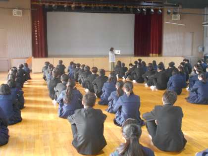 3年生の学年集会を講堂で行いました。野々先生から、絵本『葉っぱのフレンディ』が紹介されて、色づく葉のように一人ひとりの個性の違いを認め合い、自分を見つめなおす機会としていきましょうというお話がありました。