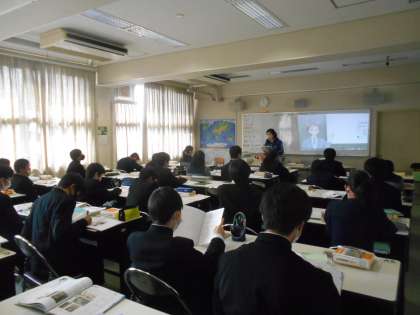 〈写真中〉2年2組(英語)