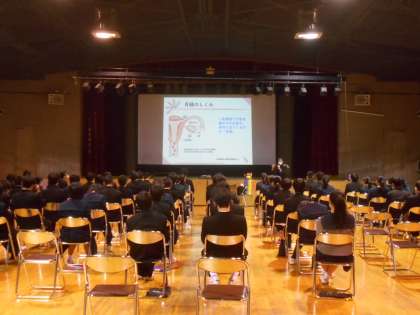 本日、3・4時限目に、3年生では「子ども将来のライフプラン支援事業」として、助産師を講師としてお迎えして、「性・生教育」を講堂で実施しました。