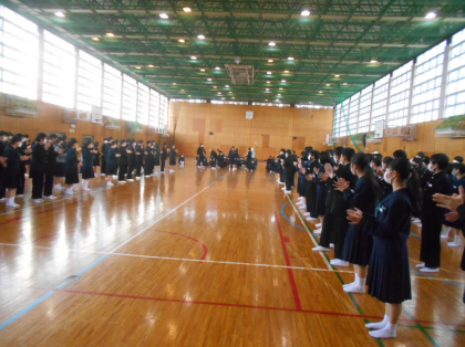 体育館でのお別れ式の様子です。