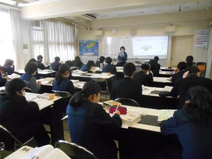 〈写真中〉2年2組(社会)