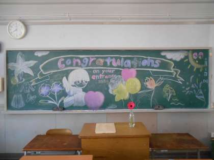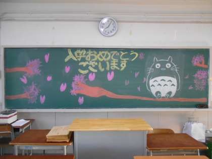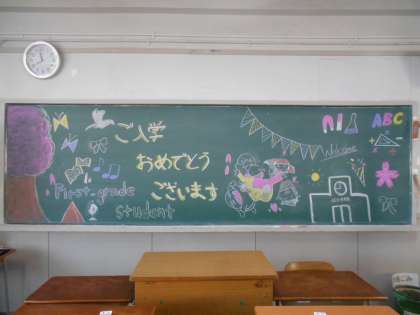 新入生を歓迎するために美術部が作成した各学級の黒板アートです。