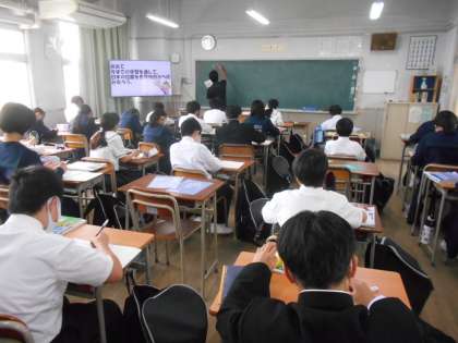 〈写真上〉1年1組(社会)