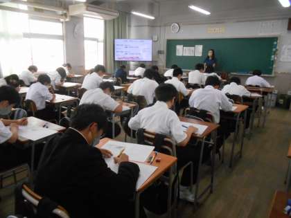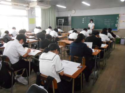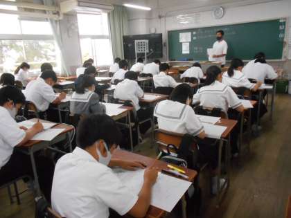 1年生の各学級での中間テスト第2日目の様子です。