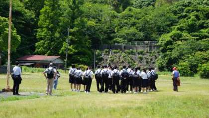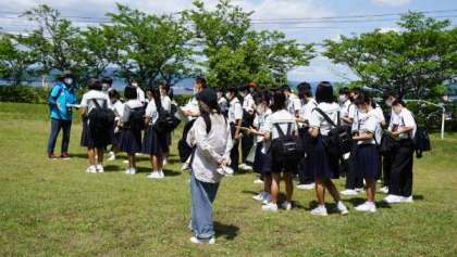 クラスごとに、ガイドさんの案内でフィールドワークに取り組みます。