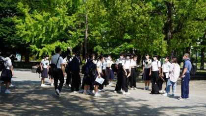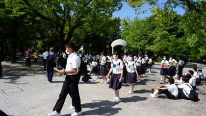 平和記念公園周辺では、班ごとに分かれて、広島平和記念資料館の見学や本川小学校、袋町小学校の各平和資料館の平和学習の活動へと向かいます。