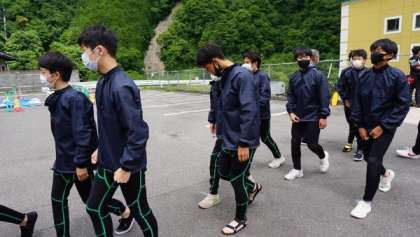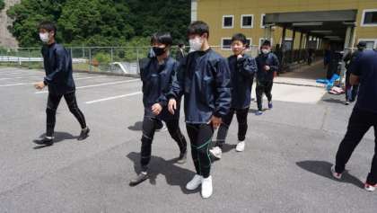 バスに乗車(ラフティング体験)【修学旅行56】